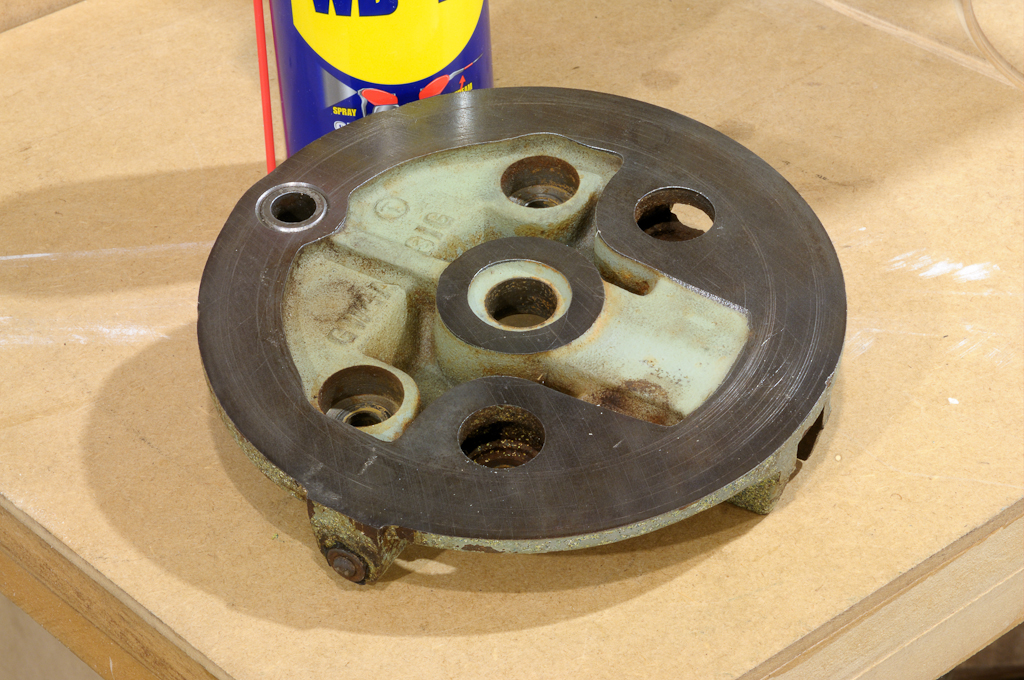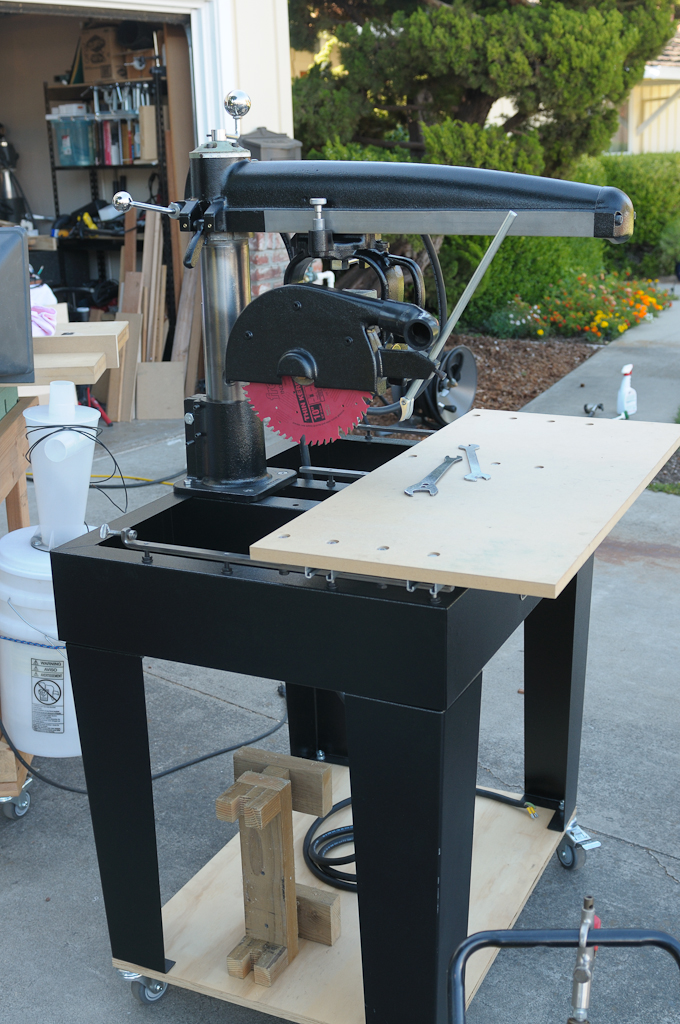 This is a radial arm saw with all the parts assembled. WD40 can for scale in all images.